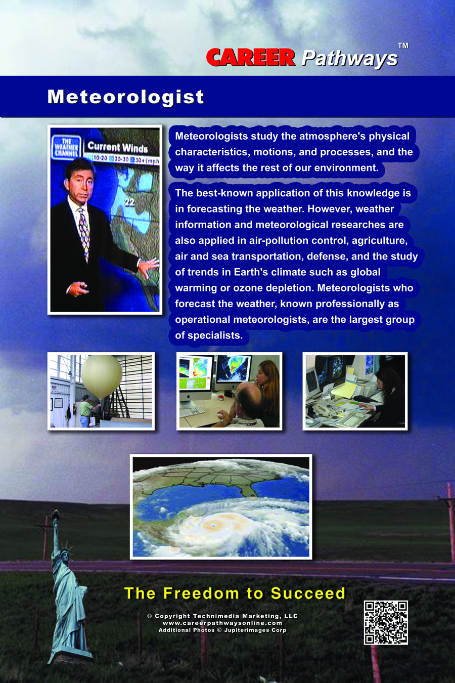 It gives a brief, yet concise description of the Nature of Work of a Meteorologist.  It also includes actual photos from the Meteorologist DVD.